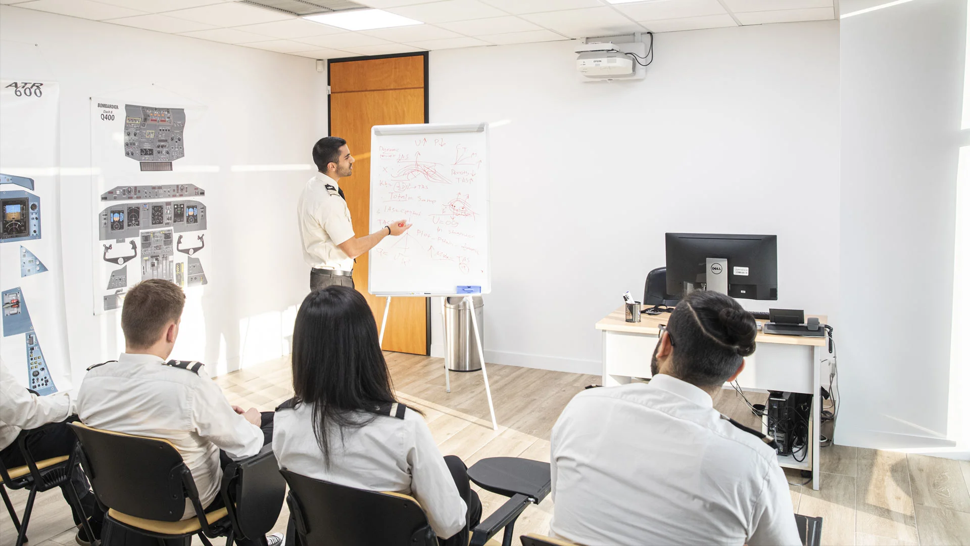 The Theoretical knowledge training stage of the ATP Integrated course, includes approximately 750 hours of classroom instruction (ground school), provided by highly knowledgeable, experienced and well-trained instructors. The classroom training consists of interactive training content, such as frequent quizzes and test assessments, slide presentation, progress tests and exam’s simulations.
